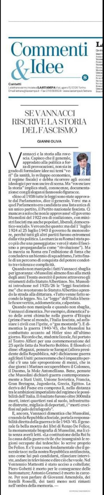 LA STAMPA: “Se Vannacci riscrive la storia del fascismo”