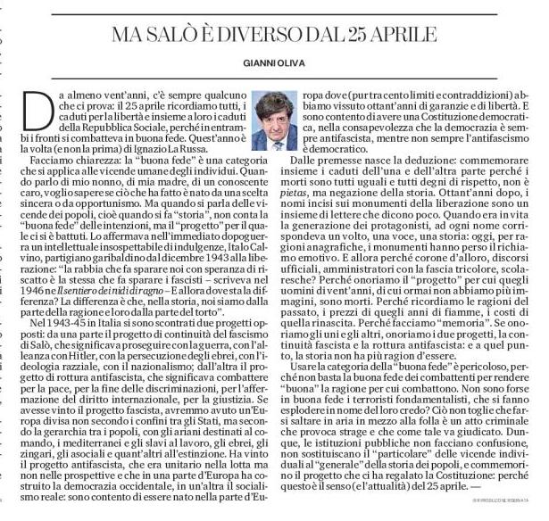 LA STAMPA: “Ma Salò è diverso dal 25 aprile”